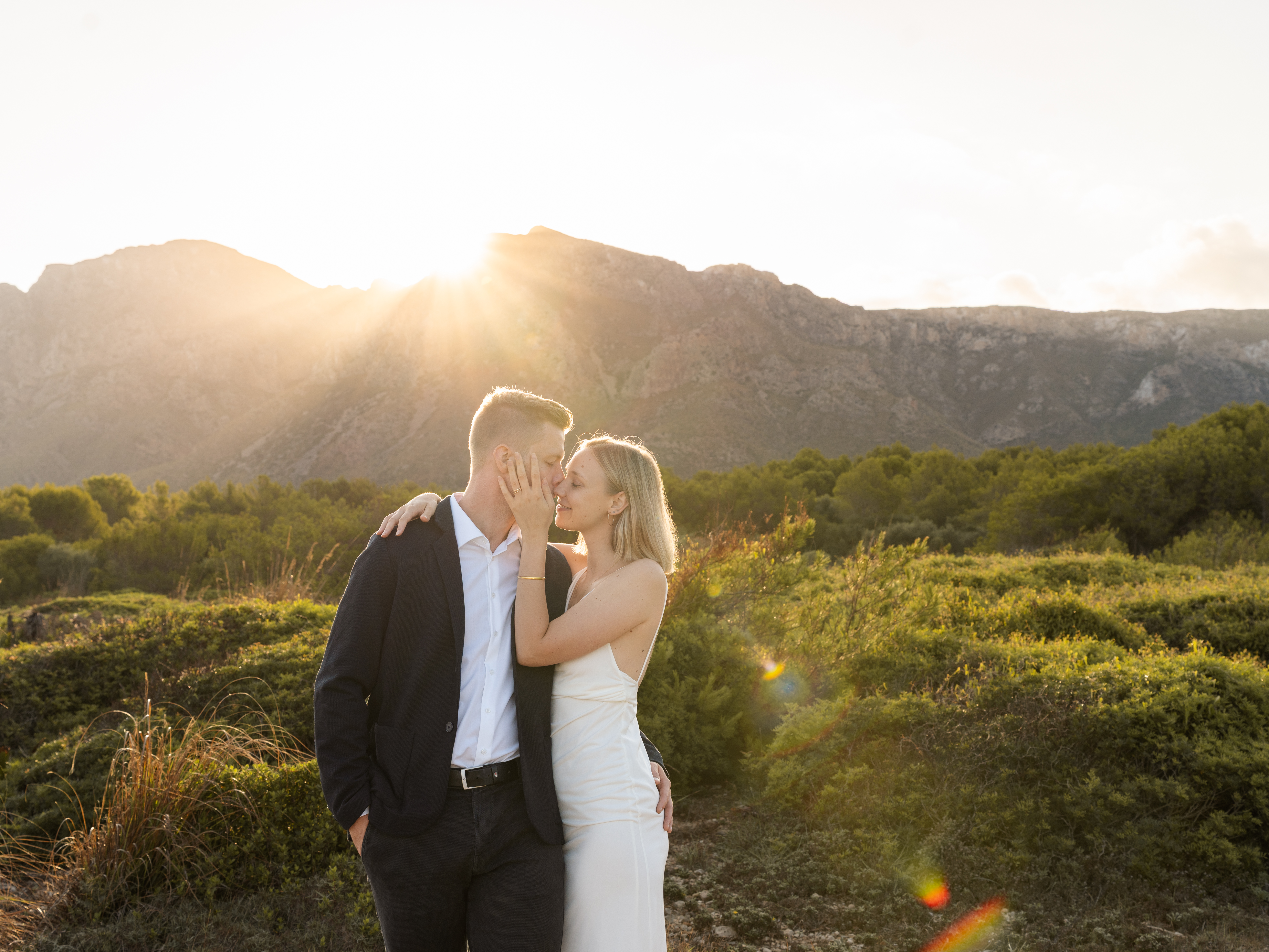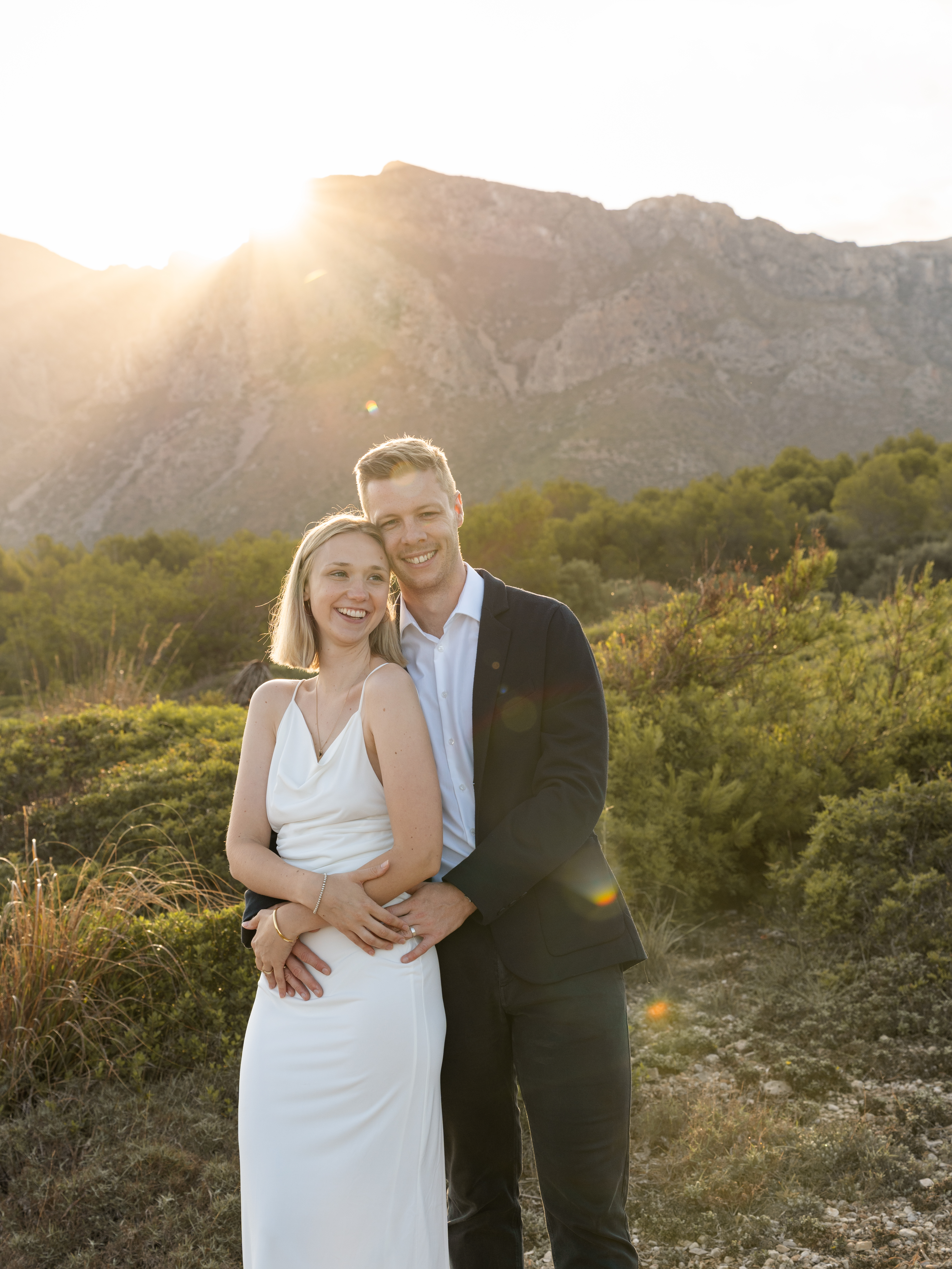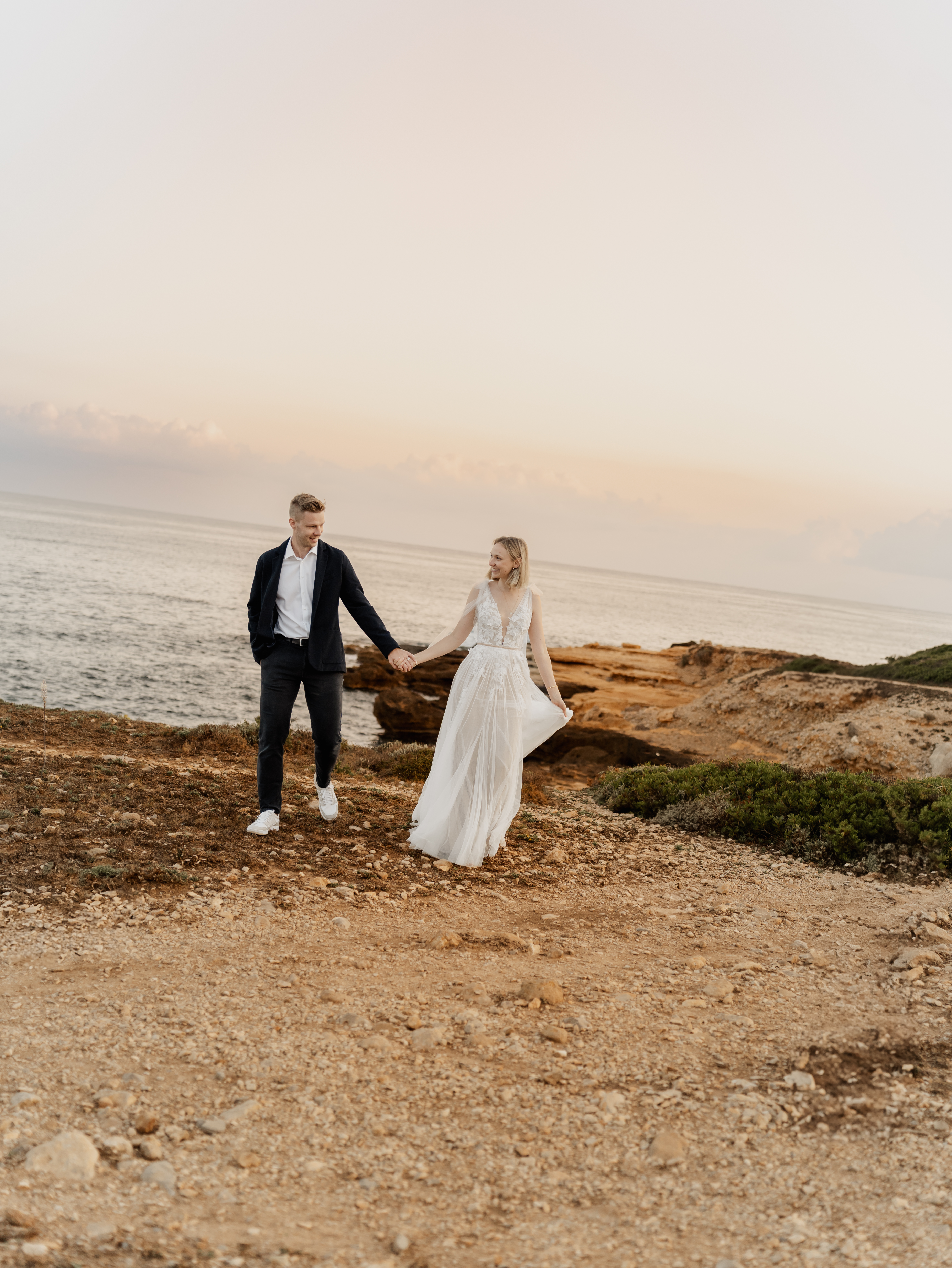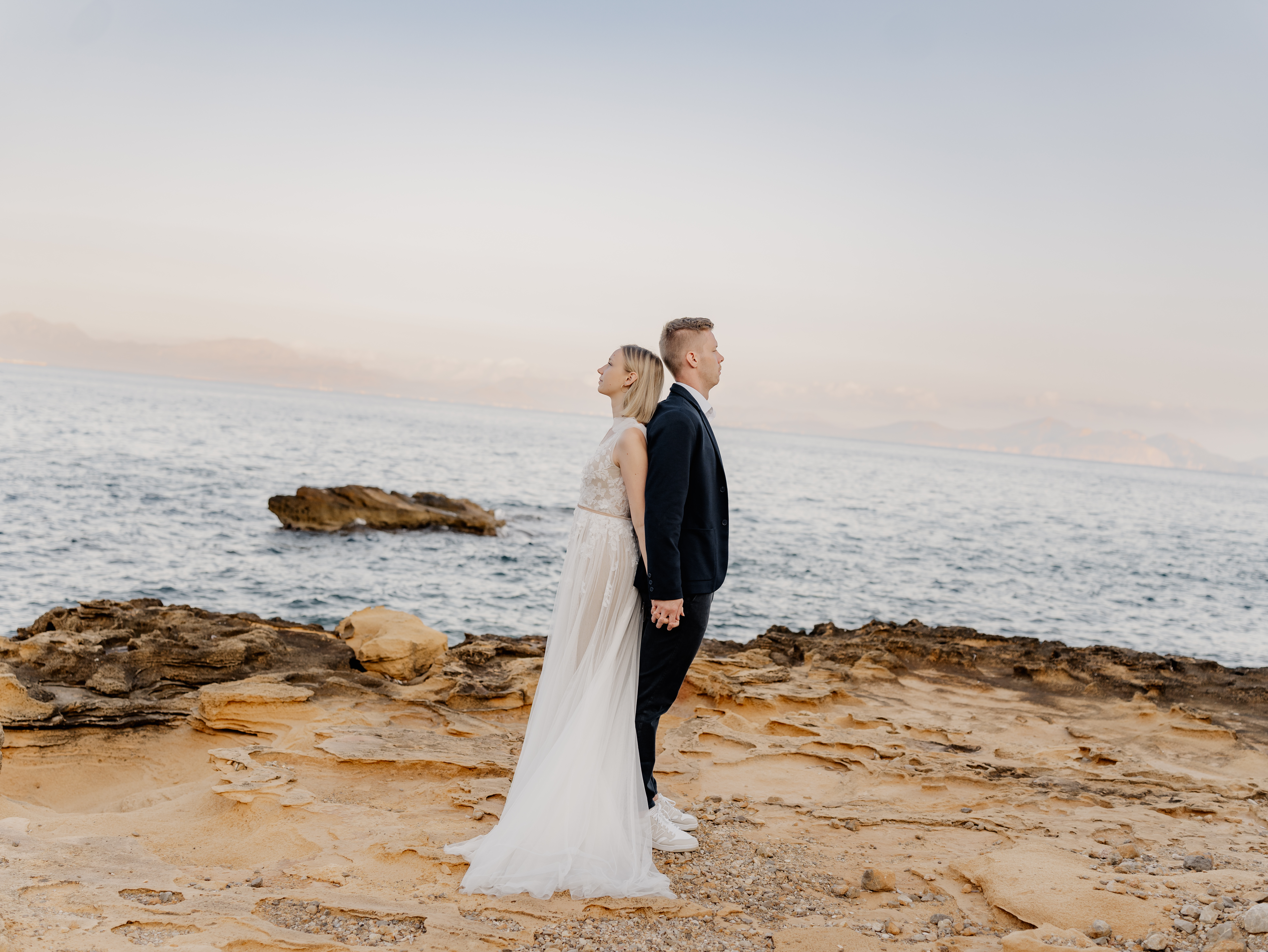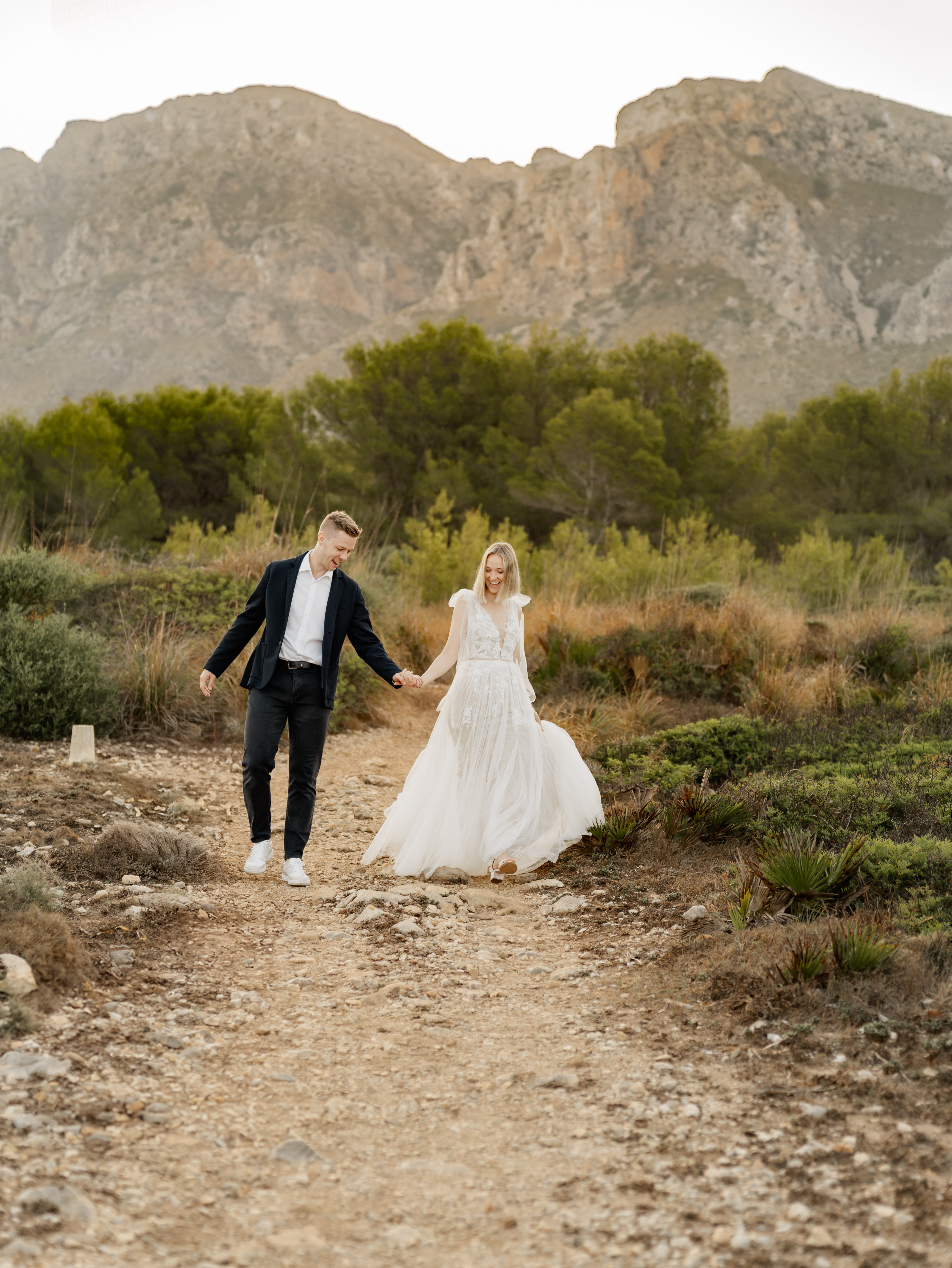 Denn an unserem Hochzeitstag regnete es unaufhörlich. Das Brautpaarshooting, auf das ich mich als Braut und Fotografin so sehr gefreut hatte, war nicht möglich. Doch ich wusste: diese Bilder würden wir nachholen. Und zwar an einem Ort, der für uns beide viel bedeutet – während unserer Flitterwochen an den rauen Küsten von Mallorca, in der ersten Morgenstunde, wenn das Licht der Golden Hour die Insel in ein weiches, goldenes Leuchten taucht.
