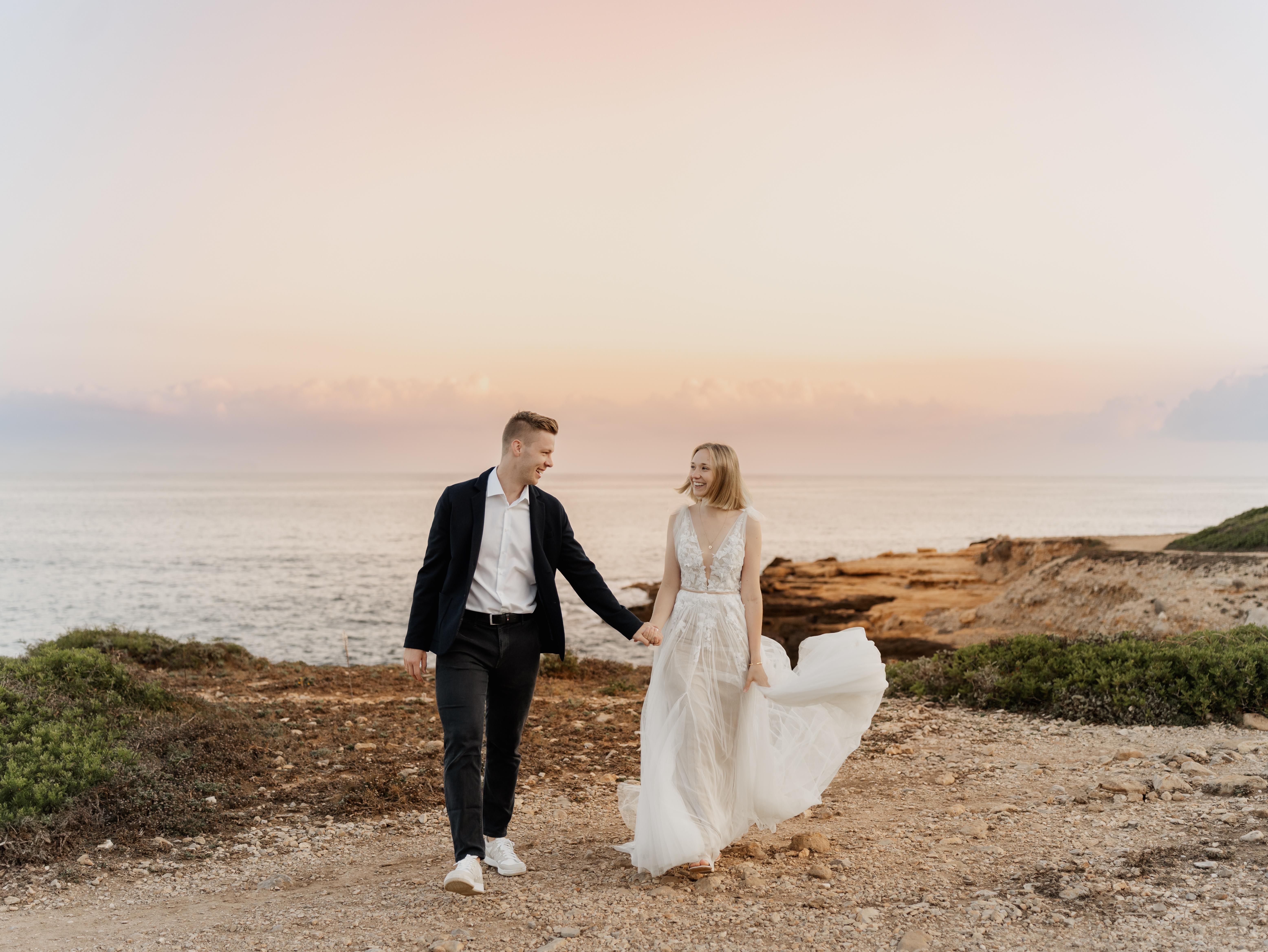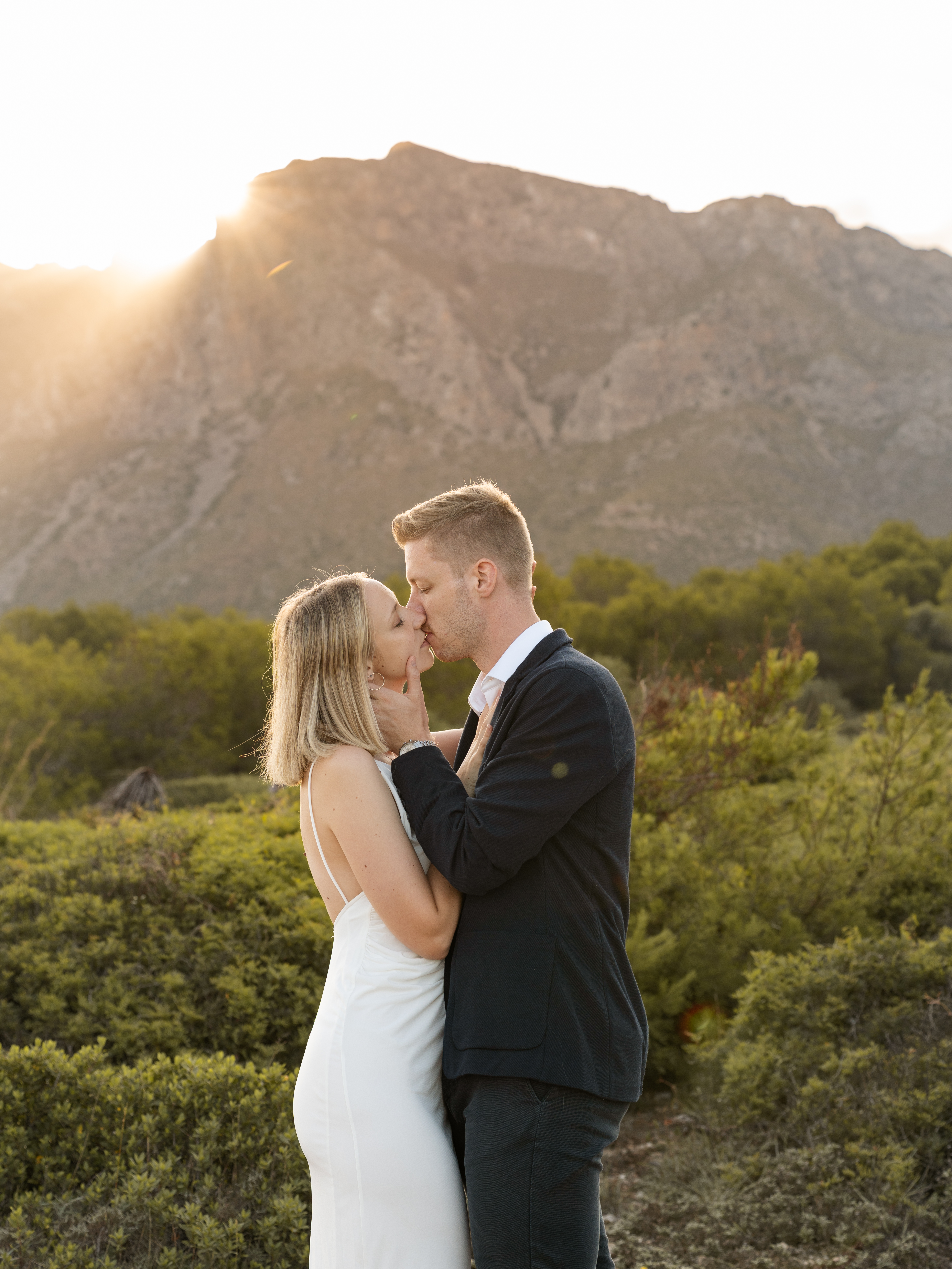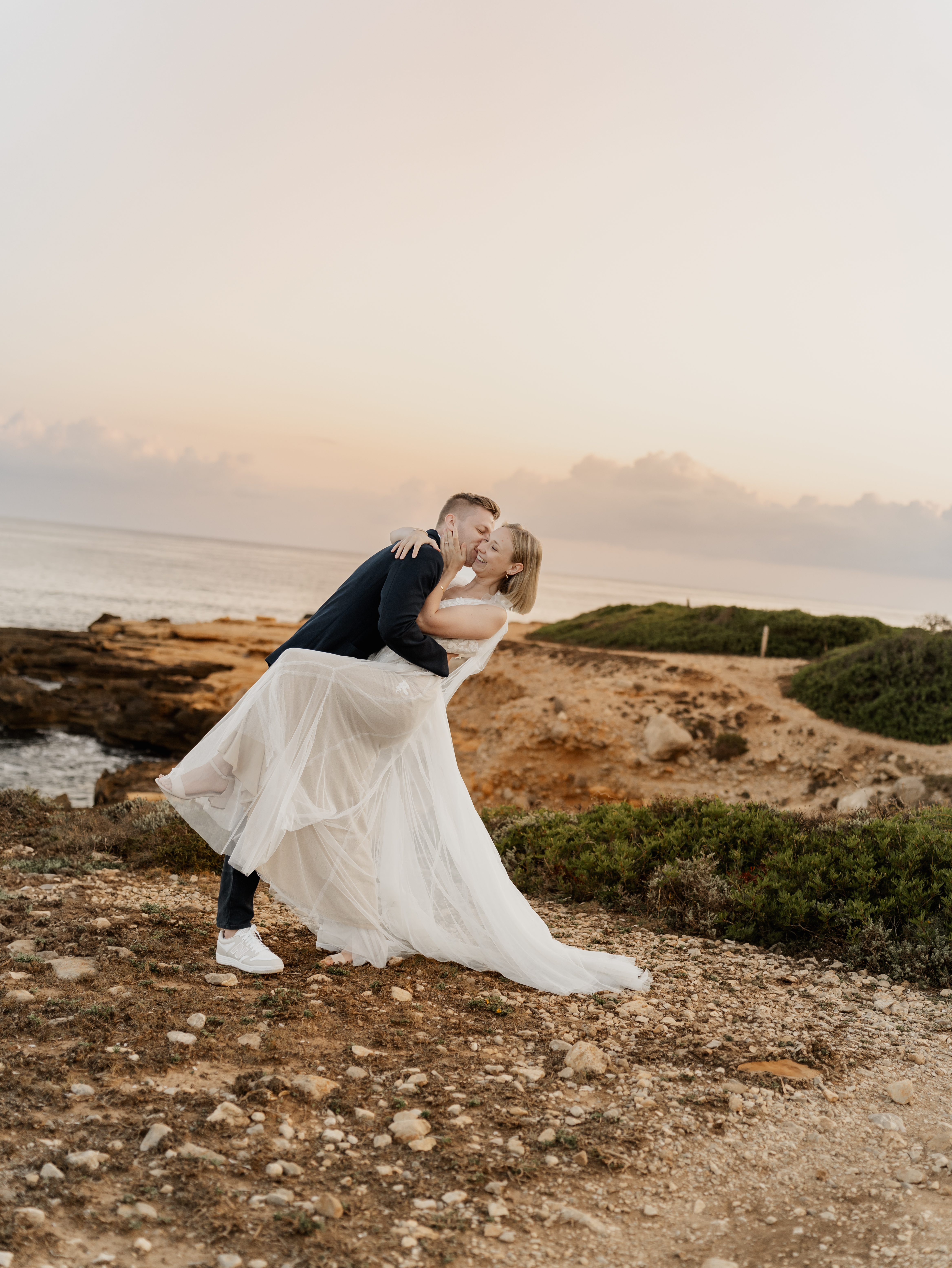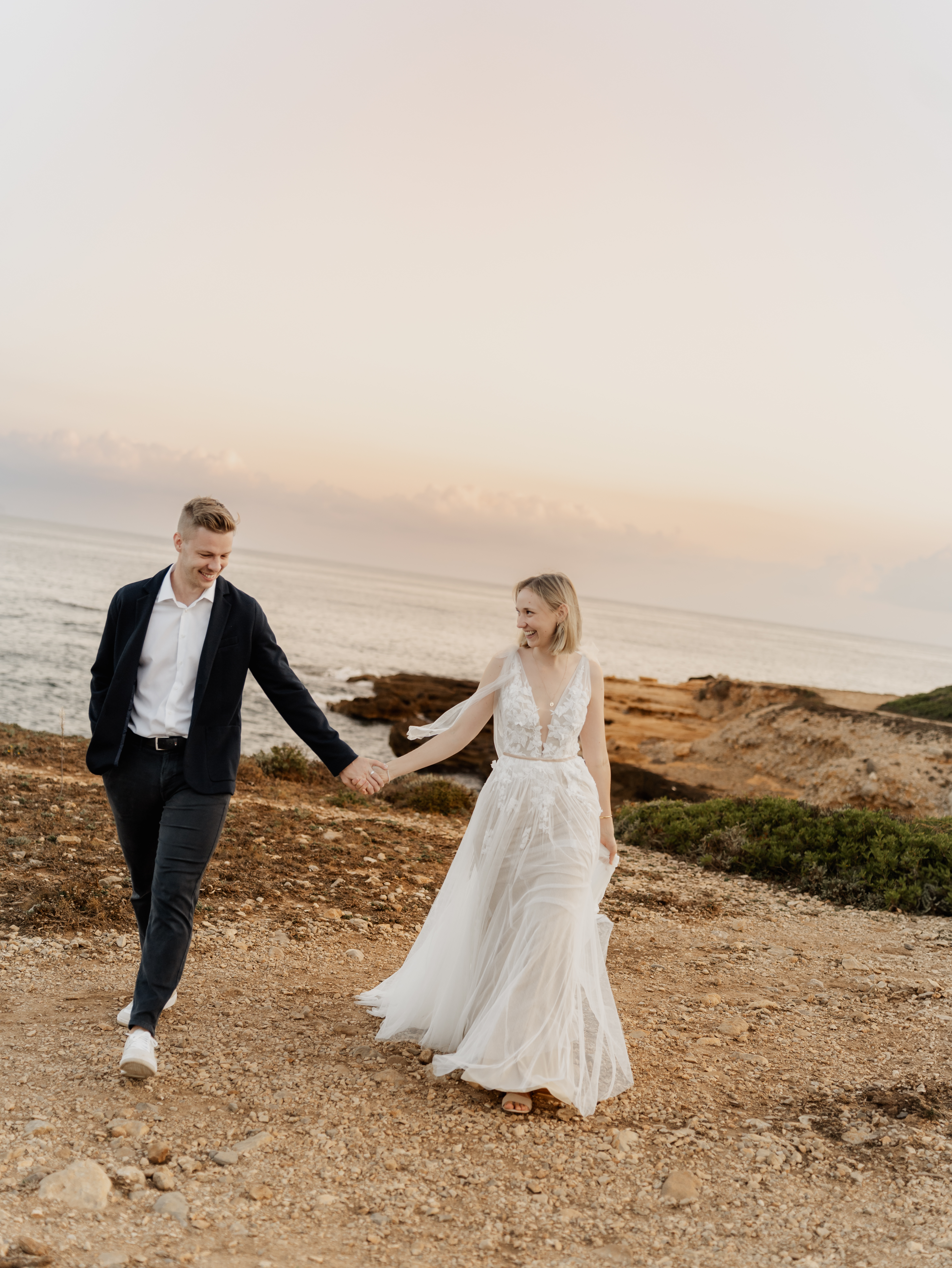 Denn an unserem Hochzeitstag regnete es unaufhörlich. Das Brautpaarshooting, auf das ich mich als Braut und Fotografin so sehr gefreut hatte, war nicht möglich. Doch ich wusste: diese Bilder würden wir nachholen. Und zwar an einem Ort, der für uns beide viel bedeutet – während unserer Flitterwochen an den rauen Küsten von Mallorca, in der ersten Morgenstunde, wenn das Licht der Golden Hour die Insel in ein weiches, goldenes Leuchten taucht.